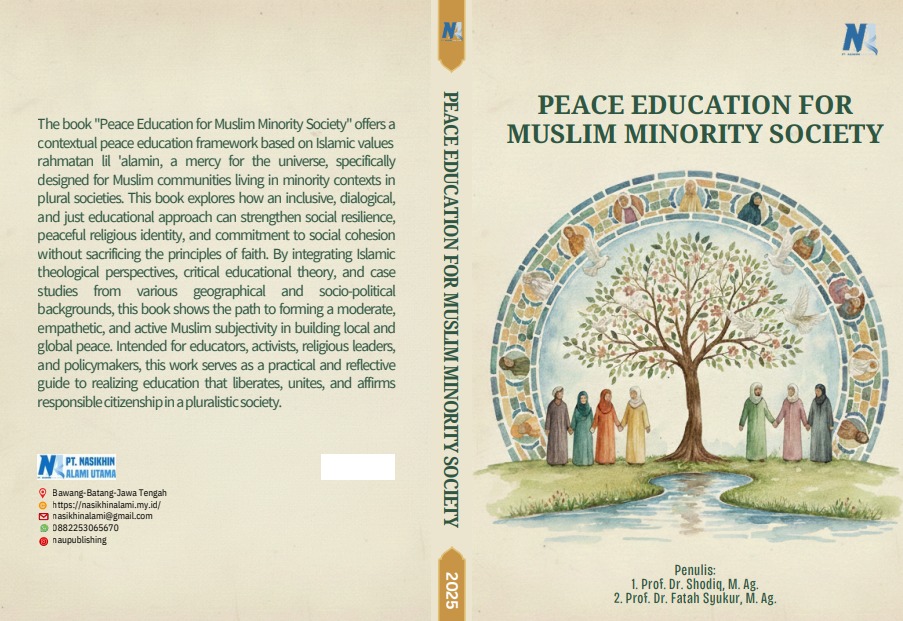 The book “Peace Education for Muslim Minority Society” offers a contextual peace education framework based on Islamic values rahmatan lil ‘alamin, a mercy for the universe, specifically designed for Muslim communities living in minority contexts in plural societies. This book explores how an inclusive, dialogical, and just educational approach can strengthen social resilience, peaceful religious identity, and commitment to social cohesion without sacrificing the principles of faith. By integrating Islamic theological perspectives, critical educational theory, and case studies from various geographical and socio-political backgrounds, this book shows the path to forming a moderate, empathetic, and active Muslim subjectivity in building local and global peace. Intended for educators, activists, religious leaders, and policymakers, this work serves as a practical and reflective guide to realizing education that liberates, unites, and affirms responsible citizenship in a pluralistic society.
